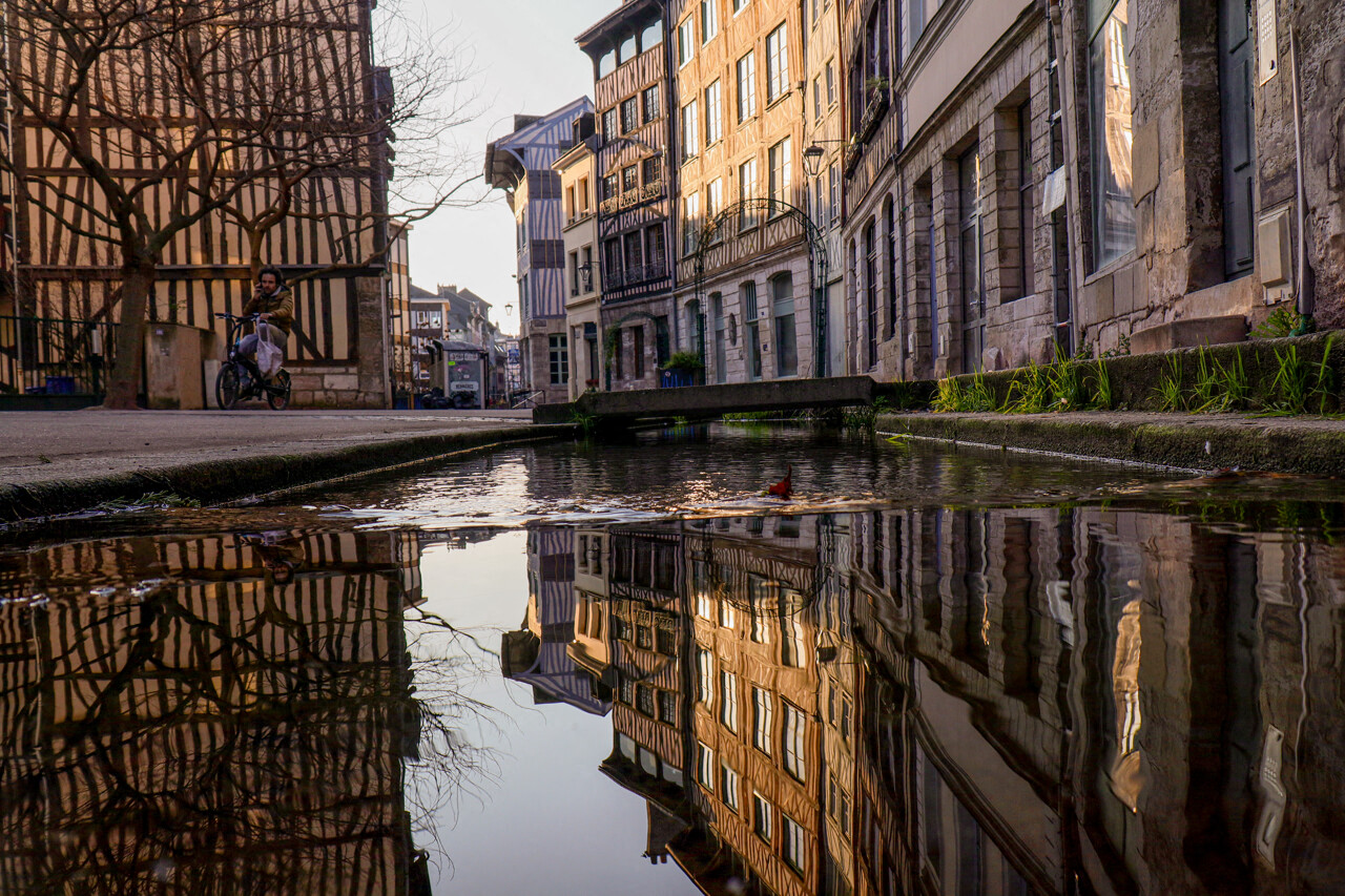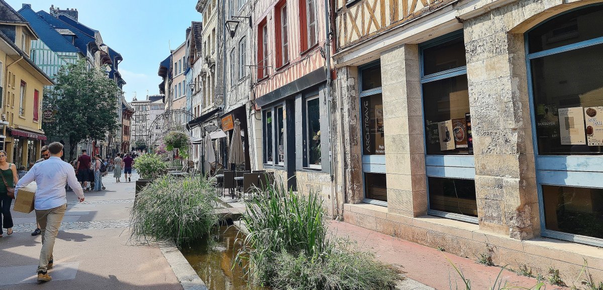 Autrefois peuplé d’écrevisses, de carpes, de truites ou de tanches, le Robec industrialisé du début du XXe siècle est désormais vide de vie. Pour assainir les quartiers de Rouen traversés par la rivière polluée, la municipalité prend des mesures : le ruisseau est canalisé entre 1938 et 1941. C’est donc un petit cours d’eau artificiel, calme et clair qui coule aujourd’hui dans la rue Eau-de-Robec. Il continue de faire le bonheur des habitants du quartier et des touristes. Qui sait les histoires que va continuer à charrier ce cours d’eau tranquille…